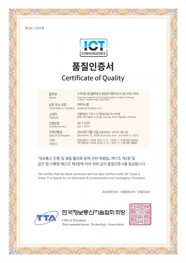 [특허] 응집플럭 분석을 통한 응집제 자동주입 시스템