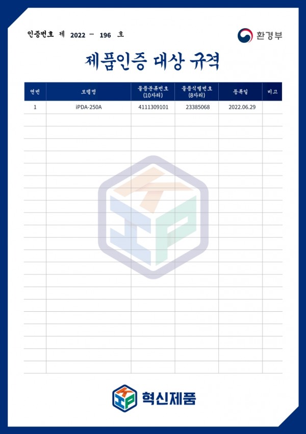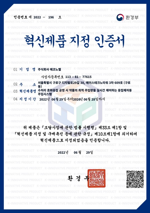 혁신제품 지정 인증서
