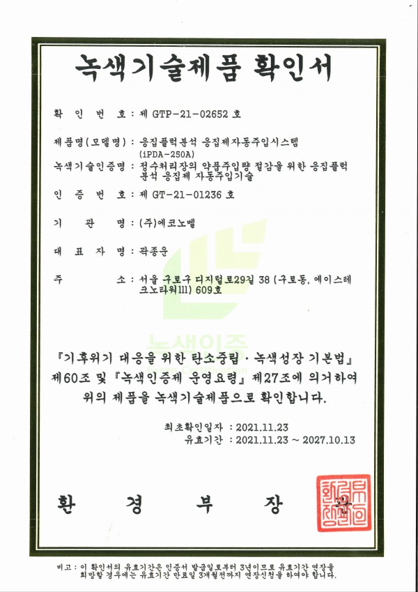 [특허] 응집플럭 분석을 통한 응집제 자동주입 시스템