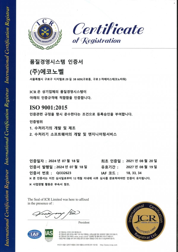 ISO 9001:2015 품질경영시스템인증